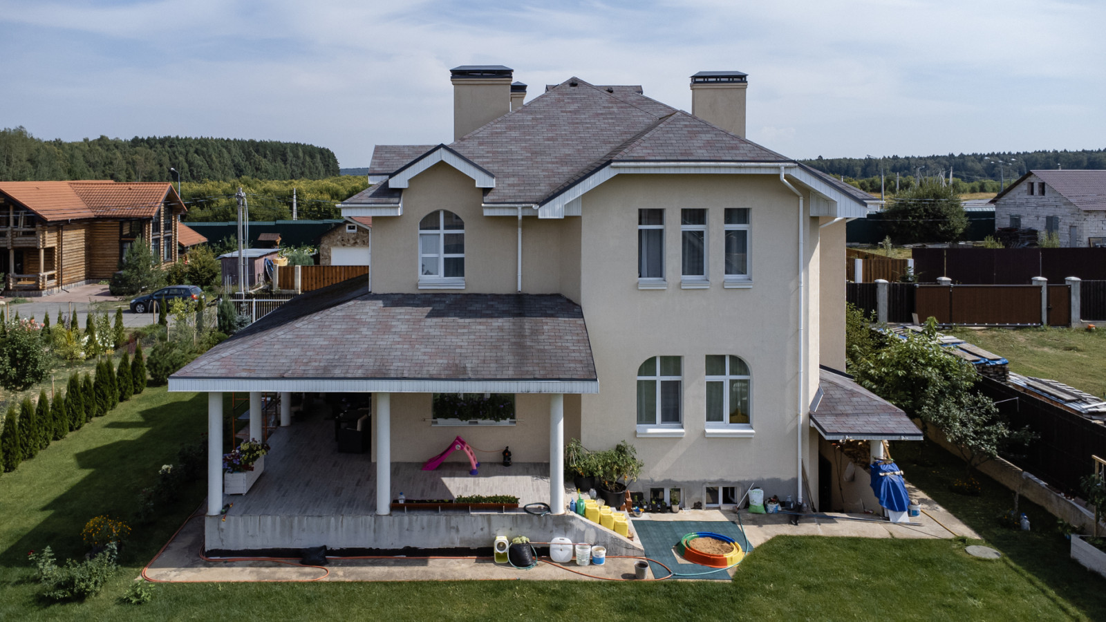 Дома кирпичные "под ключ", по 142 кв.м на участках пл. 7,5 соток. Очень высокое качество строительства и современного ремонта, качественные инженерные системы, высокие потолки, большие окна. В коттеджах по 4 спальни (одна на первом этаже) и по 3 санузла.