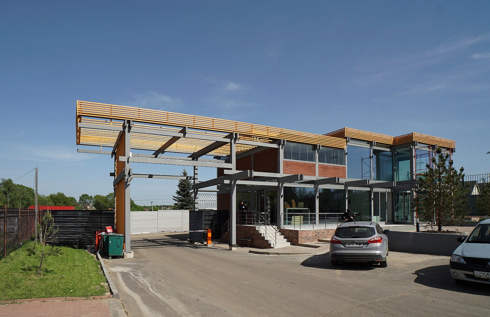 В коттеджном поселке Валуевская Слобода завершилось строительство въездной группы и административного здания, на первом этаже которого будут располагаться продуктовый магазин, комната охраны и служба эксплуатации, а на втором этаже предполагается разместить кафе: